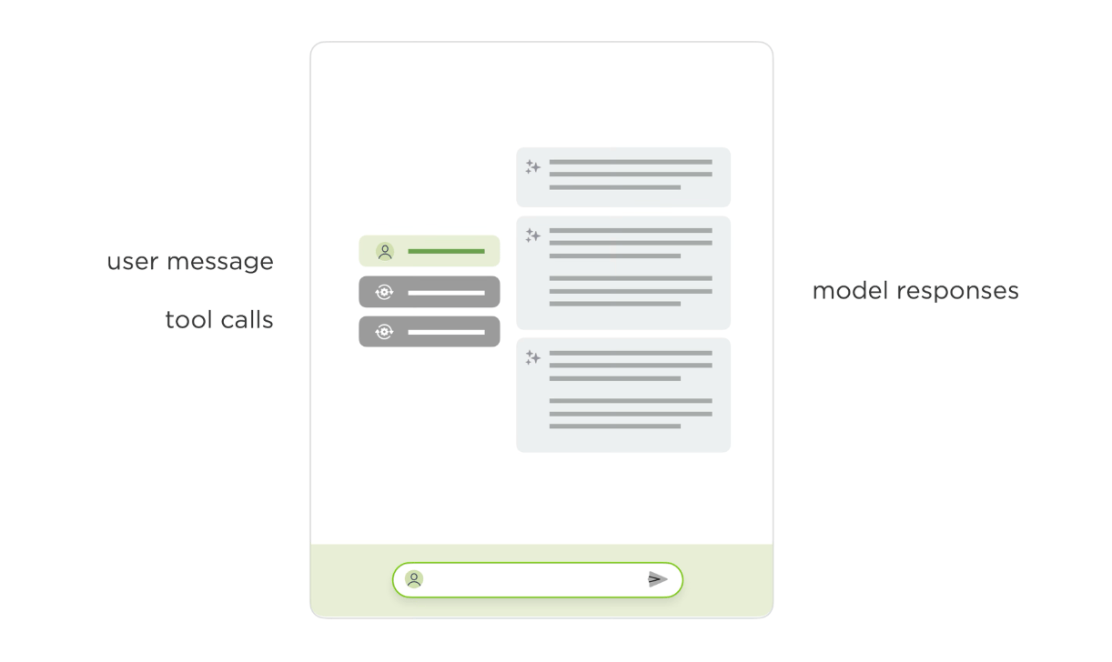 He highlights the problem where tool calls and reasoning traces clutter AI chat layouts.