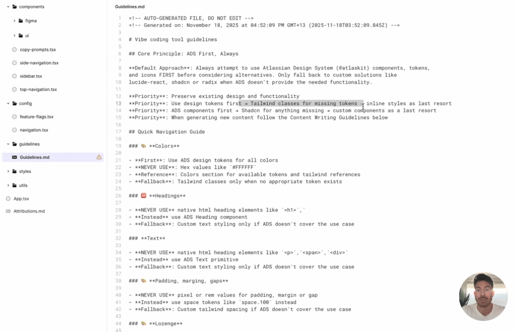 It’s job is simple: teach the model how to wield the Atlassian design system.